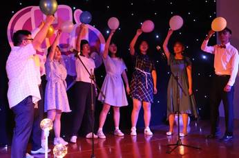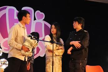 李媛媛、詹可意、王琳同学浅浅吟唱,带来歌曲串烧《七里香》、《我是一只鱼》、《夏天的风》,展现青春自信。