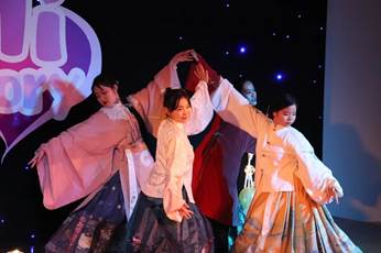 唐文星、刘瀚檬、王诗雨、张耕四位女生身穿汉服,献上了舞蹈《礼仪之邦》,优美的身姿展现了齐鲁大地厚重的文化底蕴。