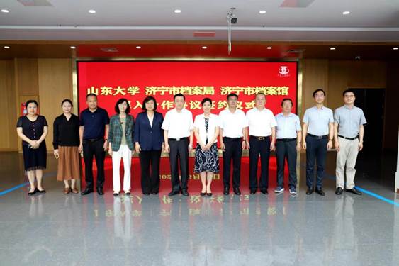 《济宁市档案局、济宁市档案馆与新葡萄8883官网AMG深入合作协议》签约仪式暨“新葡萄8883官网AMG实习教学基地”揭牌仪式在济宁市档案馆举行。济宁市档案馆馆长杜宏春,市委办公室副主任、市档案局局长陈妍妍,市档案馆副馆长郑剑波,市档案馆四级调研员曲梅,新葡萄8883官网AMG历史文化学院党委书记刘军出席仪式。